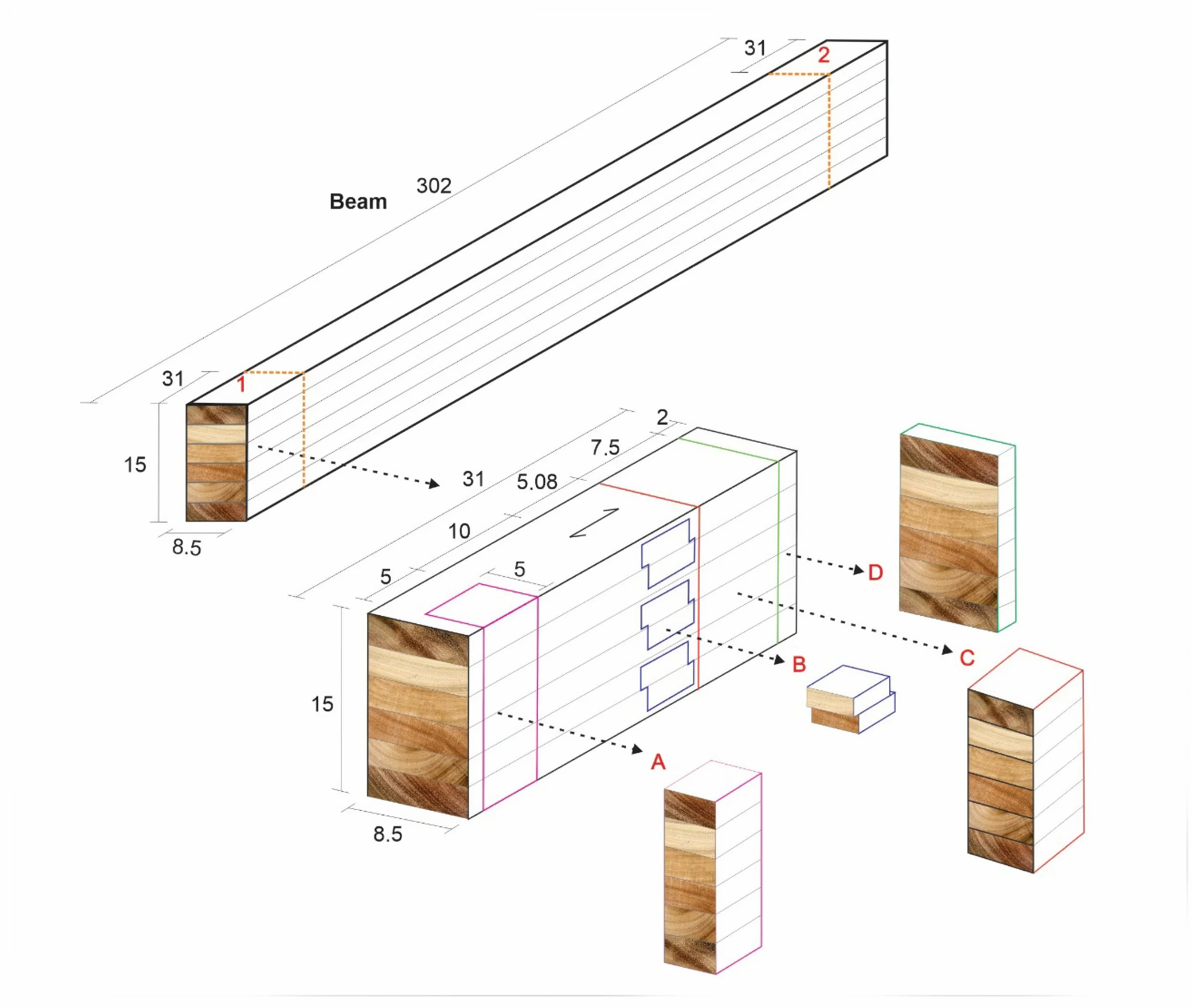 Controlled lamella assembly to create consistent, high-strength structural elements.